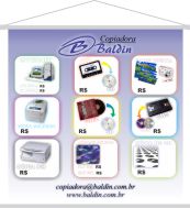 Faixas em quaisquer formatos, impressas em lona vinílica, com acabamento em madeira e cordões.